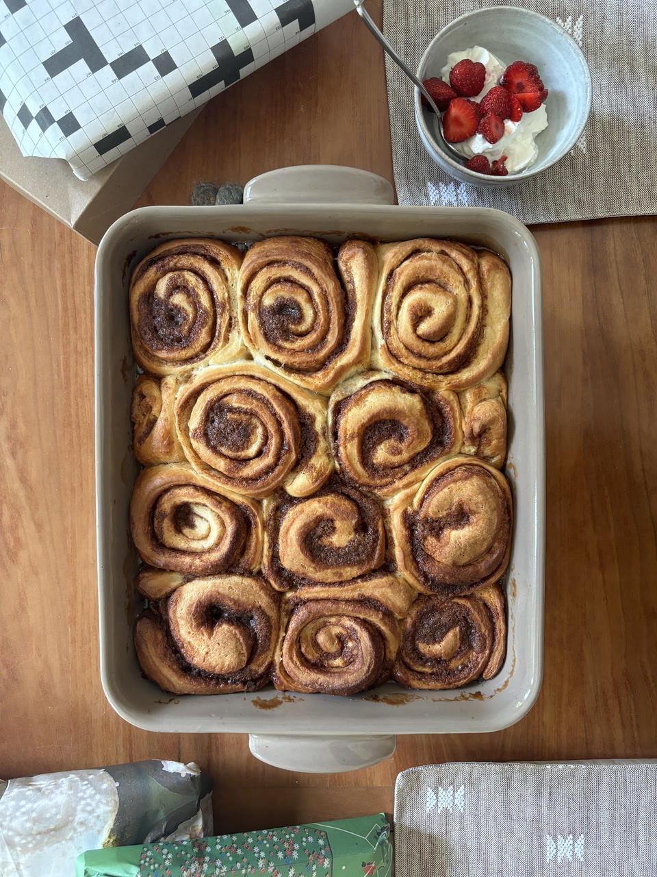 These cinnamon rolls are adapted to rise overnight in the refrigerator because it’s easier and more pleasant than trying to get the project done at very early morning hours. Enjoy!